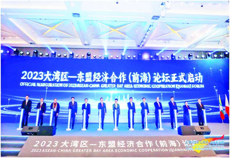 အာဆီယံ-တရုတ်ဗဟိုဌာန (ASEAN-China Centre-ACC)၏ ဖိတ်ကြားချက်အရ စီးပွားရေးနှင့် ကူးသန်းရောင်းဝယ်ရေးဝန်ကြီးဌာန ဒုတိယဝန်ကြီး ဦးညွန့်အောင် ဦးဆောင်သော မြန်မာကိုယ်စားလှယ် အဖွဲ့သည် ဇူလိုင် ၂၉ ရက် မှ ၃၀ ရက်အထိ တရုတ်နိုင်ငံ ကွမ်းတုန်းပြည်နယ် ရှန်ကျန်းမြို့၌ ကျင်းပသည့် ၂၀၂၃ ခုနှစ်အာဆီယံ-တရုတ် မဟာပင်လယ်အော်ဒေသ (ကျူးဟိုင်) စီးပွားရေးပူးပေါင်းဆောင်ရွက်မှုဖိုရမ် (2023 ASEAN-China Greater Bay Area (Qianhai) Economic Cooperation Forum) သို့ တက်ရောက်ကြသည်။