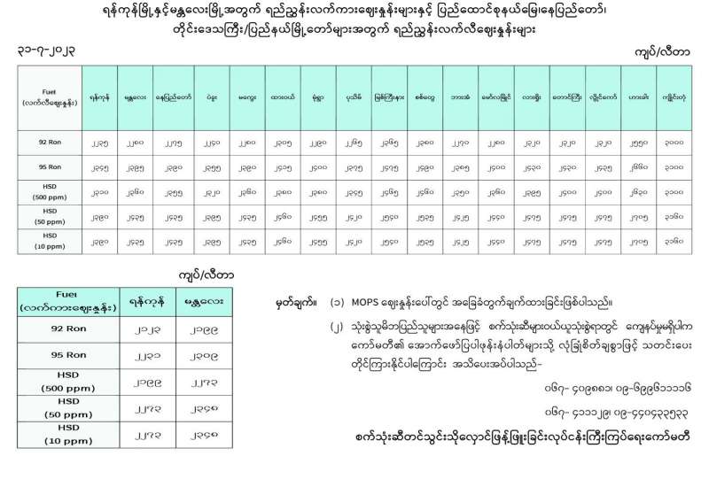 ရန်ကုန်မြို့နှင့် မန္တလေးမြို့အတွက် ရည်ညွှန်းလက်ကားဈေးနှုန်းများနှင့် ပြည်ထောင်စုနယ်မြေ နေပြည်တော်၊ တိုင်းဒေသကြီး/ပြည်နယ် မြို့တော်များအတွက် ရည်ညွှန်းလက်လီဈေးနှုန်းများ