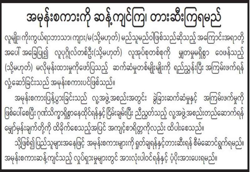 အကြမ်းဖက်မှုပပျောက်ရေးအတွက် ပြည်သူသို့ အသိပေးနှိုးဆော်ချက်