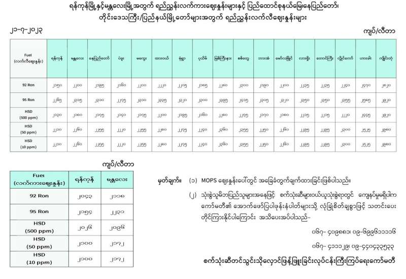 ရန်ကုန်မြို့နှင့် မန္တလေးမြို့အတွက် ရည်ညွှန်းလက်ကားဈေးနှုန်းများနှင့် ပြည်ထောင်စုနယ်မြေ နေပြည်တော်၊ တိုင်းဒေသကြီး/ပြည်နယ် မြို့တော်များအတွက် ရည်ညွှန်းလက်လီဈေးနှုန်းများ