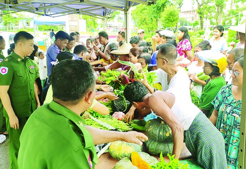 ဆိုင်ကလုန်းမုန်တိုင်း (မိုခါ) တိုက်ခတ်မှုကြောင့် မုန်တိုင်းဒဏ်သင့်ဒေသခံပြည်သူများနှင့် ဌာနဆိုင်ရာဝန်ထမ်းများ၏ စားသောက်ရေးအဆင်ပြေစေရန်နှင့် မိမိတို့အလိုရှိရာ စားသောက်ကုန်ပစ္စည်းများကို ဈေးနှုန်းသက်သာစွာဖြင့် ဝယ်ယူစားသောက်နိုင်ရေးအတွက် အနောက်ပိုင်းတိုင်းစစ်ဌာနချုပ်၊ နယ်မြေခံတပ်မတော်သားများနှင့် တာဝန်ရှိသူများက နေ့စဉ်ရောင်းချပေးလျက်ရှိသည်။