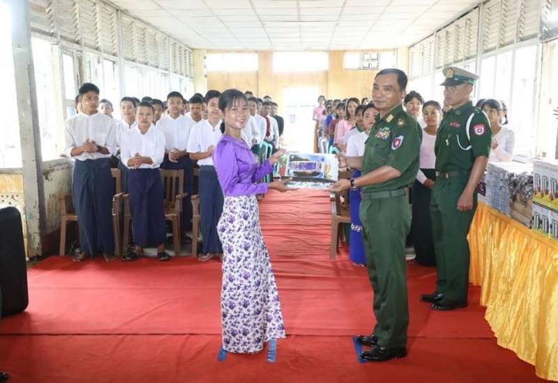 အနောက်ပိုင်းတိုင်းစစ်ဌာချုပ်၊ စစ်တွေတပ်နယ်ရှိ လေးဝတီပညာရေးရိပ်သာတွင်နေထိုင်၍ စစ်တွေတက္ကသိုလ်၊ အစိုးရနည်းပညာအထက်တန်းကျောင်းနှင့် အခြေခံပညာ အထက်တန်းကျောင်းများ၌ တက်ရောက်ပညာသင်ကြားလျက်ရှိသော တိုင်းစစ်ဌနချုပ်ကွပ်ကဲမှုအောက် တပ်ရင်း/တပ်ဖွဲ့များမှ တပ်မတော်သား မိသားစုဝင်ကျောင်းသား၊ ကျောင်းသူများအား ကျောင်းသုံးဗလာစာအုပ်၊ စာရေးကိရိယာများနှင့် အသုံးအဆောင်ပစ္စည်းများ ထောက်ပံ့ပေးအပ်ခြင်းကို အဆိုပါလေးဝတီပညာရေး ရိပ်သာခန်းမ၌ပြုလုပ်ရာ တိုင်းမှူးဗိုလ်ချုပ်ထင်လတ်ဦးနှင့် တာဝန်ရှိသူများ၊ ကျောင်းသား၊ ကျောင်းသူများ တက်ရောက်ကြသည်။