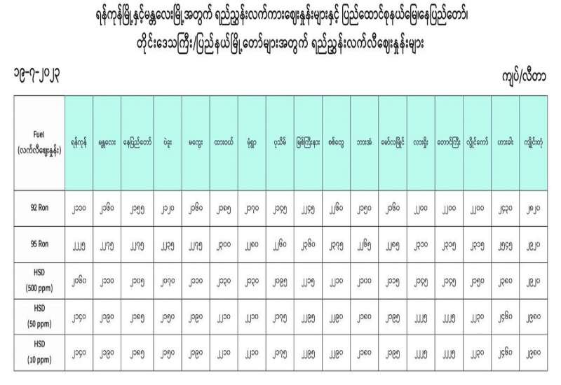 ရန်ကုန်မြို့နှင့် မန္တလေးမြို့အတွက် ရည်ညွှန်းလက်ကားဈေးနှုန်းများနှင့် ပြည်ထောင်စုနယ်မြေ နေပြည်တော်၊ တိုင်းဒေသကြီး/ ပြည်နယ် မြို့တော်များအတွက် ရည်ညွှန်းလက်လီဈေးနှုန်းများ