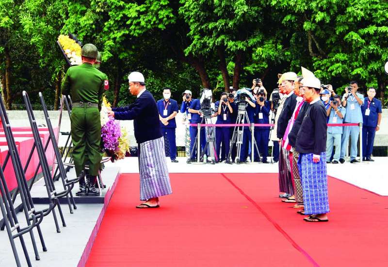 ၂၀၂၃ ခုနှစ် (၇၆) နှစ်မြောက် အာဇာနည်နေ့ အခမ်းအနားကို ယနေ့ နံနက် ၈ နာရီတွင် ရန်ကုန်မြို့ ဗဟန်းမြို့နယ်ရှိ အာဇာနည်ဗိမာန်၌ကျင်းပရာ နိုင်ငံတော်စီမံအုပ်ချုပ်ရေးကောင်စီအဖွဲ့ဝင် ဒုတိယဝန်ကြီးချုပ်နှင့် ပို့ဆောင်ရေးနှင့်ဆက်သွယ်ရေးဝန်ကြီးဌာန ပြည်ထောင်စုဝန်ကြီး ဗိုလ်ချုပ်ကြီးတင်အောင်စန်း တက်ရောက်ဂါရဝပြုသည်။