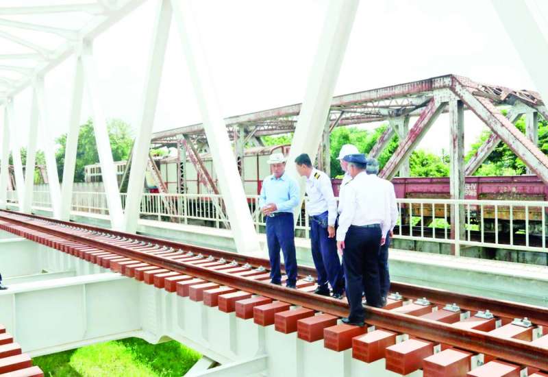 နိုင်ငံတော်စီမံအုပ်ချုပ်ရေးကောင်စီအဖွဲ့ဝင် ဒုတိယဝန်ကြီးချုပ်နှင့် ပို့ဆောင်ရေးနှင့်ဆက်သွယ်ရေးဝန်ကြီးဌာန ပြည်ထောင်စုဝန်ကြီး ဗိုလ်ချုပ်ကြီးတင်အောင်စန်းသည် တာဝန်ရှိသူများနှင့်အတူ ယနေ့နံနက်ပိုင်းတွင် ရန်ကုန် - မန္တလေးရထားလမ်းပိုင်း အဆင့်မြှင့်တင်ရေးစီမံကိန်း၏ ရန်ကုန် - တောင်ငူ ရထားလမ်းပိုင်းရှိ စီမံကိန်းလုပ်ငန်းဆောင်ရွက်နေမှုအခြေအနေနှင့် နေပြည်တော် - တောင်ငူ အဝေးပြေးလမ်းနှင့် ပဲခူး - ရန်ကုန် ပြည်ထောင်စုလမ်းပေါ်ရှိ လမ်းညွှန်း အမှတ်အသားများ တပ်ဆင်ထားရှိမှုအခြေအနေများကို ကြည့်ရှုစစ်ဆေးသည်။