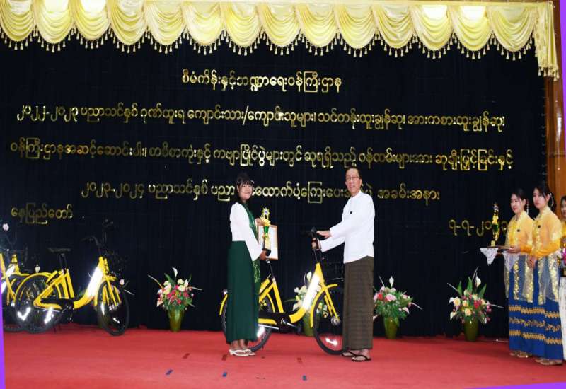 စီမံကိန်းနှင့် ဘဏ္ဍာရေးဝန်ကြီးဌာန ၂၀၂၂-၂၀၂၃ ခုနှစ် တက္ကသိုလ်ဝင်စာမေးပွဲတွင် ဂုဏ်ထူးရ ကျောင်းသားကျောင်းသူများ၊ သင်တန်းထူးချွန်ဆု၊ အားကစားထူးချွန်ဆု၊ ဝန်ကြီးဌာနအဆင့်ဆောင်းပါး၊ စာစီစာကုံးနှင့် ကဗျာပြိုင်ပွဲများတွင် ဆုရရှိကြသည့် ဝန်ထမ်းများအား ဆုချီးမြှင့်ခြင်းနှင့် ၂၀၂၃-၂၀၂၄ ပညာသင်နှစ် ပညာသင်ထောက်ပံ့ကြေးပေးအပ်ပွဲ အခမ်းအနားကို ယနေ့ နံနက် ၉ နာရီတွင် နေပြည်တော်ရှိစီမံကိန်းနှင့်ဘဏ္ဍာရေးဝန်ကြီးဌာန စုပေါင်းခန်းမ၌ ကျင်းပသည်။