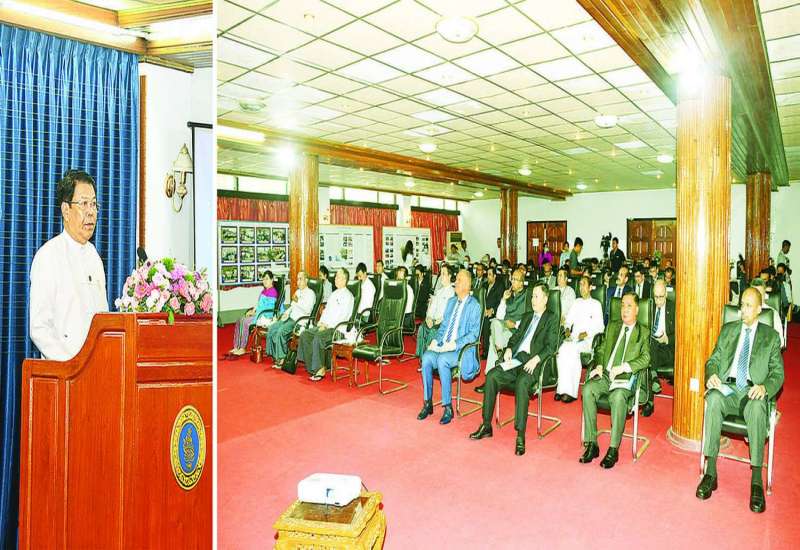 ရင်းနှီးမြှုပ်နှံမှုနှင့် နိုင်ငံခြားစီးပွားဆက်သွယ်ရေးဝန်ကြီးဌာန ဝန်ထမ်းများ၏ လူ့စွမ်းအားအရင်းအမြစ် ဖွံ့ဖြိုးတိုးတက်စေရန်နှင့် ဝန်ထမ်းစွမ်းဆောင်ရည်မြှင့်တင်ရန် ရည်ရွယ်သည့် Knowledge Sharing Programme (KSP) သောကြာနေ့စကားဝိုင်း (Friday Talk) ၏ အမှတ်စဉ် (၂၀) ဆွေးနွေးပွဲကို ယနေ့မွန်းလွဲပိုင်းတွင် အဆိုပါဝန်ကြီးဌာန၌ ကျင်းပပြုလုပ်ရာ ရင်းနှီးမြှုပ်နှံမှုနှင့် နိုင်ငံခြားစီးပွားဆက်သွယ်ရေးဝန်ကြီးဌာန ပြည်ထောင်စုဝန်ကြီး ဒေါက်တာကံဇော် တက်ရောက်အမှာစကားပြောကြားသည်။
