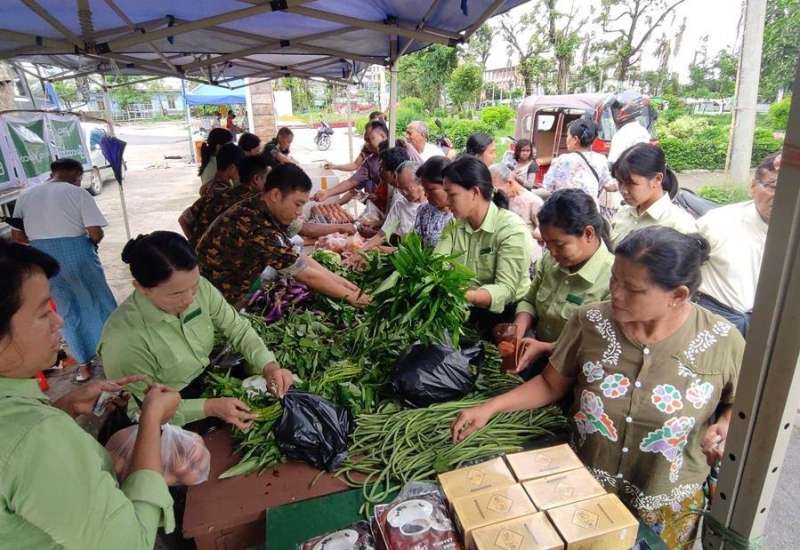 ဆိုင်ကလုန်းမုန်တိုင်း(မိုခါ)တိုက်ခတ်မှုကြောင့် ပျက်စီးမှုများ ဖြစ်ပေါ်ခဲ့သည့် စစ်တွေမြို့ရှိ မုန်တိုင်းဒဏ်သင့် ဒေသခံပြည်သူများနှင့် ဌာနဆိုင်ရာဝန်ထမ်းများ၏ စားသောက်ရေးအဆင်ပြေစေရန်နှင့် မိမိတို့အလိုရှိရာစားသောက်ကုန်ပစ္စည်းများကို ဈေးနှုန်းသက်သာစွာဖြင့် ဝယ်ယူစားသောက်နိုင်ရေးအတွက် အနောက်ပိုင်းတိုင်း စစ်ဌာနချုပ်၊ နယ်မြေခံတပ်မတော်သားများနှင့် တာဝန်ရှိသူများက နေ့စဉ်ရောင်းချပေး လျက်ရှိသည်။