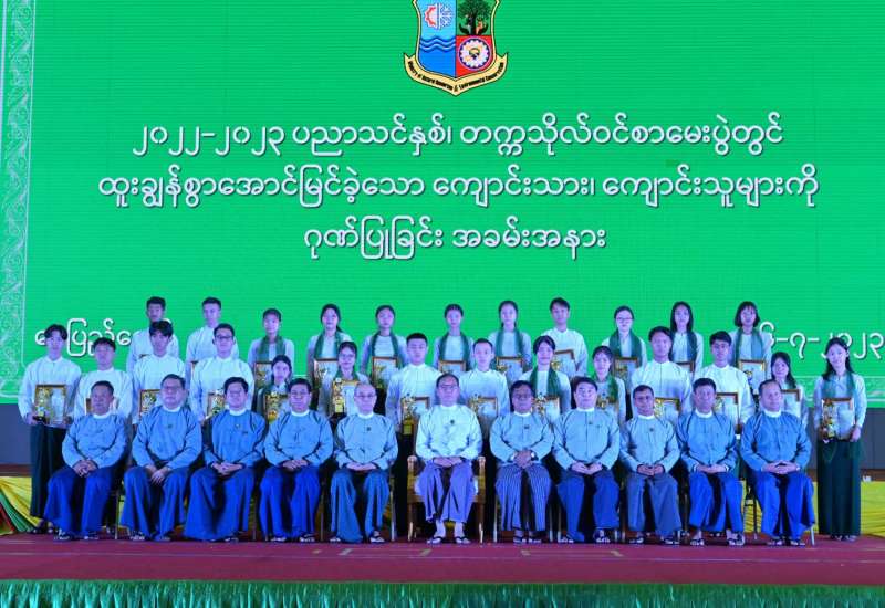 ၂၀၂၂-၂၀၂၃ ပညာသင်နှစ် တက္ကသိုလ်ဝင်စာမေးပွဲတွင် ဂုဏ်ထူးများဖြင့် ထူးချွန်စွာအောင်မြင်ခဲ့ကြသော သယံဇာတနှင့် သဘာဝပတ်ဝန်းကျင်ထိန်းသိမ်းရေးဝန်ကြီးဌာနရှိ ဝန်ထမ်းများ၏ သား၊ သမီးများအား ပညာရည်ချွန်ဆု ချီးမြှင့်ပွဲအခမ်းအနားကို ယနေ့နံနက်ပိုင်းတွင် နေပြည်တော်ရှိ မဏိရတနာကျောက်စိမ်းခန်းမ၌ ကျင်းပသည်။