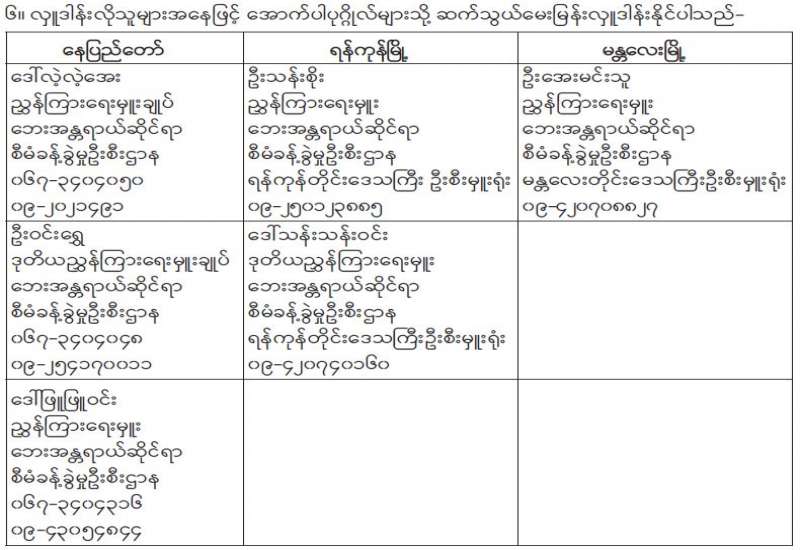 ၁။ မြန်မာနိုင်ငံတွင် ၁၄-၅-၂၀၂၃ ရက်နေ့တွင် ဖြစ်ပွားခဲ့သည့် အလွန့်အလွန်အားကောင်းသော ဆိုင်ကလုန်းမုန်တိုင်းမိုခါကြောင့် ဘေးသင့်ပြည်သူများအတွက် ပါဝင်လှူဒါန်းလိုသော စေတနာရှင်ပြည်သူများအနေဖြင့် မြန်မာကျပ်ငွေစာရင်းအမှတ် OA -011834 နှင့် နိုင်ငံခြား ငွေစာရင်းအမှတ် 1DA- 0300086 သို့ ထည့်ဝင်လှူဒါန်းနိုင်ကြောင်း ကြေညာခဲ့ပါသည်။