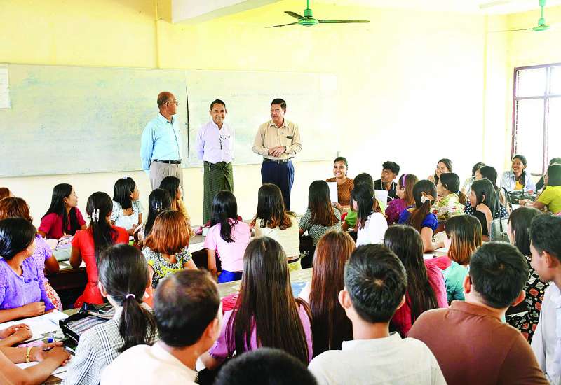 ရခိုင်ပြည်နယ် သဘာဝဘေးအန္တရာယ်ဆိုင်ရာစီမံခန့်ခွဲမှုအဖွဲ့ဥက္ကဋ္ဌ၊ ရခိုင်ပြည်နယ်ဝန်ကြီးချုပ် ဦးထိန်လင်းသည် ဒုတိယဝန်ကြီးများ၊ ပြည်နယ်ဝန်ကြီးများ၊ တာဝန်ရှိသူများနှင့်အတူ ယနေ့မွန်းလွဲပိုင်းက စစ်တွေတက္ကသိုလ်၌ ဆိုင်ကလုန်းမုန်တိုင်း (မိုခါ)တိုက်ခတ်မှုကြောင့် ထိခိုက်ပျက်စီးခဲ့သော စာသင်ဆောင်၊ စာသင်ခန်း၊ ကျောင်းသား အိပ်ဆောင်များ ပြန်လည်ပြုပြင်နေမှုနှင့် ပြုပြင်ပြီးစီးမှုအခြေအနေကို သွားရောက်ကြည့်ရှုစစ်ဆေးသည်။