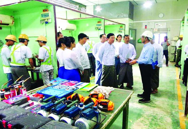အလုပ်သမားဝန်ကြီးဌာန ပြည်ထောင်စုဝန်ကြီး ဒေါက်တာပွင့်ဆန်းသည် ယနေ့နံနက်ပိုင်းတွင် ရန်ကုန်တိုင်းဒေသကြီး တိုင်းရင်းသားရေးရာဝန်ကြီး၊ တာဝန်ရှိသူများနှင့်အတူ သင်္ဃန်းကျွန်းမြို့နယ်ရှိ Center for Vocational Training (Myanmar) သို့ရောက်ရှိပြီး လုပ်ငန်းခွင်တွင် ဝင်ရောက်လုပ်ကိုင်နေသော မြန်မာလူငယ်များကို အသက်မွေးဝမ်းကျောင်းဆိုင်ရာပညာရပ်များ သင်ယူလေ့လာနိုင်ရန်နှင့် လူငယ်များလုပ်ငန်းခွင်အတွင်း ကျွမ်းကျင်မှုစွမ်းရည်များ တိုးတက်စေရေးအပြင် အသိပညာအတတ်ပညာဗဟုသုတဖွံ့ဖြိုးတိုးတက်စေရေးအတွက် ဖွင့်လှစ်ပို့ချသော အသက်မွေးဝမ်းကျောင်းသင်တန်းများတွင် လက်တွေ့သင်ကြားမှုဆိုင်ရာ သရုပ်ပြခြင်းကို လှည့်လည်ကြည့်ရှုစစ်ဆေးသည်။