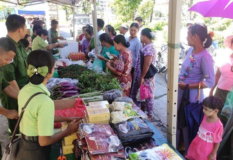 ဆိုင်ကလုန်းမုန်တိုင်း(မိုခါ)တိုက်ခတ်မှုကြောင့် ပျက်စီးမှုများ ဖြစ်ပေါ်ခဲ့သည့် စစ်တွေမြို့ရှိ မုန်တိုင်းဒဏ်သင့် ဒေသခံပြည်သူများနှင့် ဌာနဆိုင်ရာဝန်ထမ်းများ၏ စားသောက်ရေးအဆင်ပြေစေရန်နှင့် မိမိတို့အလိုရှိရာ စားသောက်ကုန်ပစ္စည်းများကို ဈေးနှုန်းသက်သာစွာဖြင့် ဝယ်ယူစားသောက်နိုင်ရေးအတွက် အနောက်ပိုင်းတိုင်း စစ်ဌာနချုပ်၊ နယ်မြေခံတပ်မတော်သားများနှင့် တာဝန်ရှိသူများက နေ့စဉ်ရောင်းချပေးလျက်ရှိသည်။