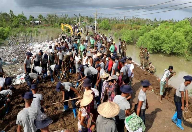 သဘာဝဘေးအန္တရာယ်ကျရောက်ခဲ့ရသည့် ဒေသများတွင် လိုအပ်သည့်ကူညီကယ်ဆယ်ရေးနှင့် ပြန်လည်ထူထောင်ရေးလုပ်ငန်းများ ကူညီဆောင်ရွက်ပေးနိုင်ရေးအတွက် တပ်မတော်မှကြိုတင်စုဖွဲ့စေလွှတ်ထားသည့် ကူညီကယ်ဆယ်ရေးအဖွဲ့များသည် နယ်မြေခံလုံခြုံရေးတပ်ဖွဲ့ဝင်များ၊ လူမှုကယ်ဆယ်ရေးအဖွဲ့များနှင့်ပူးပေါင်း၍ သက်ဆိုင်ရာဒေသများတွင် အင်တိုက်အားတိုက် ကူညီဆောင်ရွက်ပေးလျက်ရှိသည်။