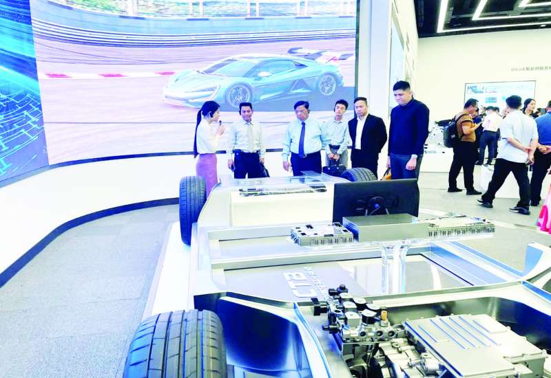 China-ASEAN Forum on Emerging Industry သို့ တက်ရောက်ရန် တရုတ်ပြည်သူ့သမ္မတနိုင်ငံ ကွမ်တုံးပြည်နယ် ရှန်းကျန်းမြို့တွင် ရောက်ရှိနေသည့် စက်မှုဝန်ကြီးဌာန ပြည်ထောင်စုဝန်ကြီး ဒေါက်တာချာလီသန်း ဦးဆောင်သော မြန်မာကိုယ်စားလှယ်အဖွဲ့သည် ယနေ့နံနက်ပိုင်းက BYD အမျိုးအစား လျှပ်စစ်အသုံးပြု မော်တော်ယာဉ်များ (EV) ထုတ်လုပ်လျက်ရှိသည့် စက်ရုံသို့ သွားရောက်လေ့လာကြသည်။