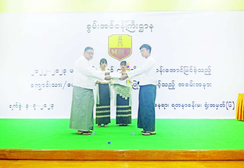 ၂၀၂၂-၂၀၂၃ ပညာသင်နှစ် တက္ကသိုလ်ဝင်တန်းစာမေးပွဲတွင် အောင်မြင်ခဲ့သည့် စွမ်းအင်ဝန်ကြီးဌာနမှ ဝန်ထမ်းများ၏ သား သမီး၊ ကျောင်းသား ကျောင်းသူများအား ဂုဏ်ပြုဆုချီးမြှင့်ခြင်း အခမ်းအနားကို ယနေ့နံနက်ပိုင်းက နေပြည်တော်ရှိ စွမ်းအင်ဝန်ကြီးဌာန ရတနာခန်းမ၌ ကျင်းပသည်။