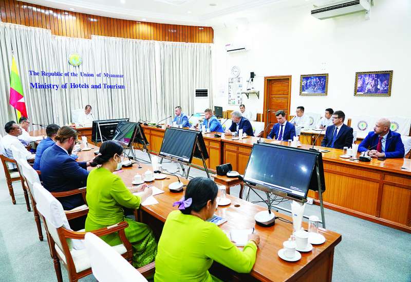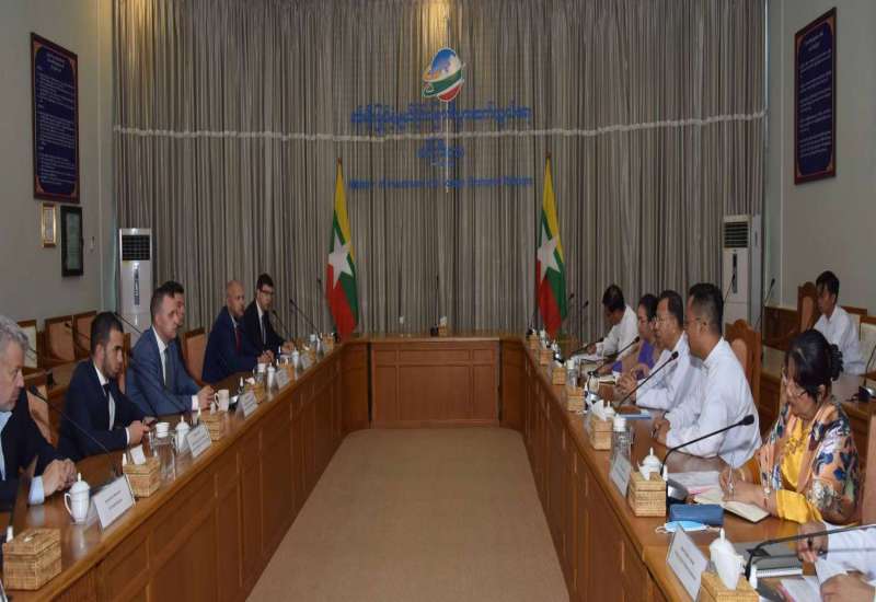 ဟိုတယ်နှင့်ခရီးသွားလာရေးဝန်ကြီးဌာန ပြည်ထောင်စုဝန်ကြီး ဦးအောင်သော်သည် ရုရှား- မြန်မာချစ်ကြည်ရေးနှင့်ပူးပေါင်းဆောင်ရွက်ရေးအသင်းမှ Vice President ဖြစ်သူ Mr. Solonetsky Vitaly နှင့် Secretariat ဖြစ်သူ Mr. Seferov Rusher ၊ Aquarius သတင်း အချက်အလက်နည်းပညာကုမ္ပဏီ၊ ရုရှားနိုင်ငံအခြေစိုက် CMR Bank နှင့် Food Line Trading ကုမ္ပဏီတို့မှ တာဝန်ရှိသူများအား ယနေ့ မွန်းလွဲပိုင်းတွင် ဝန်ကြီးဌာန နီလာခန်းမ၌ တွေ့ဆုံသည်။