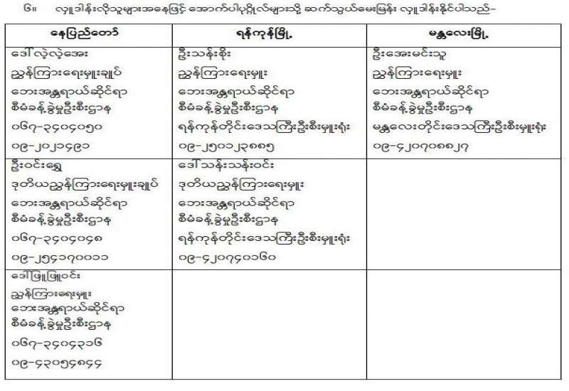 ၁။ မြန်မာနိုင်ငံတွင် ၁၄-၅-၂၀၂၃ ရက်နေ့တွင် ဖြစ်ပွားခဲ့သည့် အလွန့်အလွန်အားကောင်းသော ဆိုင်ကလုန်းမုန်တိုင်း(မိုခါ)ကြောင့် ဘေးသင့်ပြည်သူများအတွက် ပါဝင်လှူဒါန်းလိုသော စေတနာရှင်ပြည်သူများအနေဖြင့် မြန်မာကျပ်ငွေစာရင်းအမှတ် OA -011834 နှင့် နိုင်ငံခြား ငွေစာရင်းအမှတ် 1DA– 0300086 သို့ ထည့်ဝင်လှူဒါန်းနိုင်ကြောင်း ကြေညာခဲ့ပါသည်။