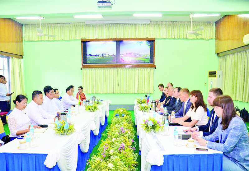 သယံဇာတနှင့်သဘာဝပတ်ဝန်းကျင် ထိန်းသိမ်းရေးဝန်ကြီးဌာန ပြည်ထောင်စုဝန်ကြီး ဦးခင်မောင်ရီသည် ရုရှား-မြန်မာချစ်ကြည်ရေးနှင့်ပူးပေါင်းဆောင်ရွက်ရေးအသင်း ဒုတိယဥက္ကဋ္ဌမစ္စတာ အန်နာသိုလီဘူးလော့ချ်နိကော့ဦးဆောင်သည့် ကိုယ်စားလှယ်အဖွဲ့အား ယနေ့ မွန်းလွဲ ၂ နာရီတွင် နေပြည်တော်ရုံးအမှတ်-၁၉ ရှိ ပြည်ထောင်စုဝန်ကြီးရုံး အစည်းအဝေးခန်းမ၌ လက်ခံတွေ့ဆုံသည်။