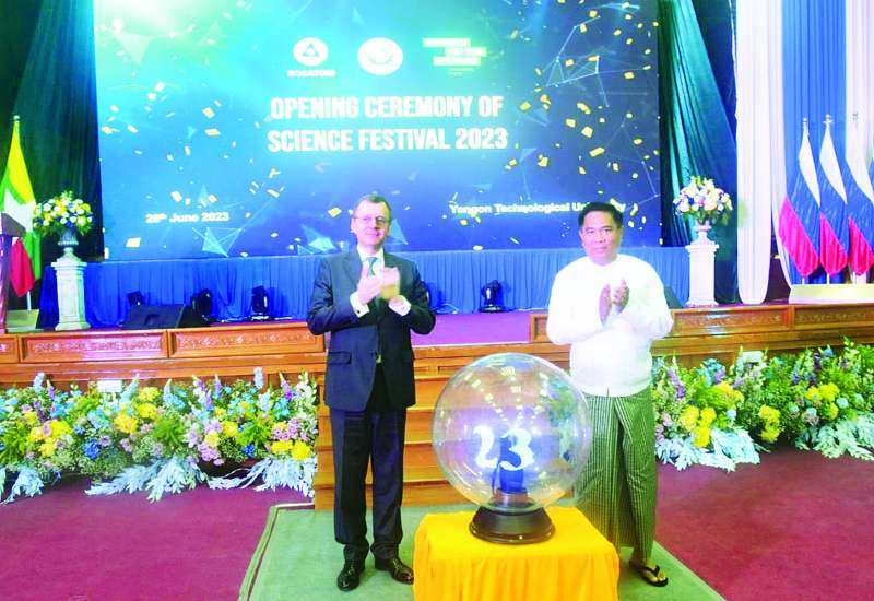 ရုရှားဖက်ဒရေးရှင်းနိုင်ငံ နိုင်ငံပိုင်အဏုမြူစွမ်းအင်ကော်ပိုရေးရှင်း "ROSATOM" နှင့် ပြည်ထောင်စု သမ္မတမြန်မာနိုင်ငံတော် သိပ္ပံနှင့်နည်းပညာဝန်ကြီးဌာနတို့ ပူးပေါင်းဆောင်ရွက်သော သိပ္ပံပွဲတော် ၂၀၂၃ ဖွင့်ပွဲအခမ်းအနားကို ယနေ့ နံနက် ၉ နာရီတွင် ရန်ကုန်နည်းပညာတက္ကသိုလ်၌ကျင်းပသည်။