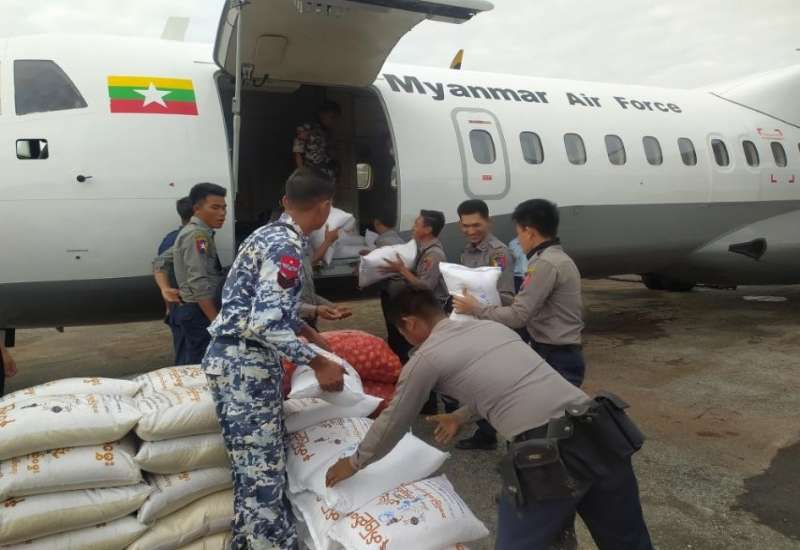 တပ်မတော်(လေ)အနေဖြင့် သဘာဝဘေးဒဏ်သင့်ဒေသများသို့ တပ်မတော်(ကြည်း၊ ရေ၊လေ)မိသားစုများ၊ စေတနာရှင်အလှူရှင်များက လှူဒါန်းသည့် စားသောက်ဖွယ်ရာများ၊ ကူညီထောက်ပံ့ရေးပစ္စည်းများ၊ အမျိုးသားသဘာဝဘေးအန္တရာယ်ဆိုင်ရာ စီမံခန့်ခွဲမှုကော်မတီက ထောက်ပံ့ပေးအပ်သည့်ပစ္စည်းများကို တပ်မတော်လေယာဉ်၊ ရဟတ်ယာဉ်များဖြင့် ကူညီပို့ဆောင်ပေးလျက်ရှိသည်။