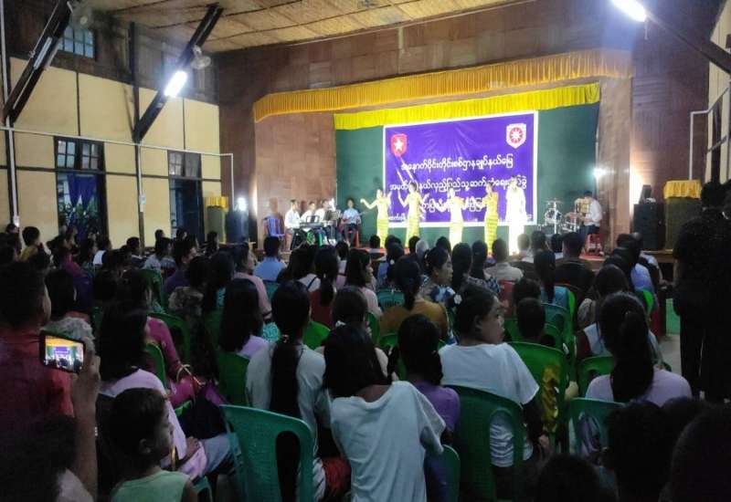 ရခိုင်ပြည်နယ်အတွင်းရှိ မိုခါမုန်တိုင်းဒဏ်သင့်ဒေသများတွင် ပြန်လည်ထူထောင်ရေးလုပ်ငန်းများ ဆောင်ရွက်လျက်ရှိသည့် နယ်မြေခံတပ်မတော်သားများ၊ မြန်မာနိုင်ငံရဲတပ်ဖွဲ့ဝင်များ၊ မီးသတ်တပ်ဖွဲ့ဝင်များနှင့် မိသားစုဝင်များအား စိတ်ရွှင်လန်းချမ်းမြေ့စေရန်နှင့် ပင်ပန်းနွမ်းနယ်မှုများ ပြေပျောက်စေရန်အတွက် ယနေ့ညနေပိုင်းတွင် ပလက်ဝမြို့၊ မြို့နယ်အထွေထွေအုပ်ချုပ်ရေးဦးစီးဌာနရှိ ကီမိုခန်းမ၌ ကာကွယ်ရေးဦးစီးချုပ်ရုံး(ကြည်း) ပြည်သူ့ဆက်ဆံရေးနှင့် စိတ်ဓါတ်စစ်ဆင်ရေးညွှန်ကြားရေးမှူးရုံး ကွပ်ကဲမှုအောက်ရှိ နယ်လှည့်ပြည်သူ့ဆက်ဆံရေးတပ်ခွဲမှ စစ်သည်/ စစ်သမီးများက အဆို/ အကများဖြင့် ဖျော်ဖြေ တင်ဆက်ကြသည်။