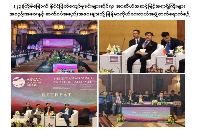 (၂၃) ကြိမ်မြောက် အာဆီယံနိုင်ငံဖြတ်ကျော်မှုခင်းများတိုက်ဖျက်ရေး အဆင့်မြင့်အရာရှိကြီးများအစည်းအဝေးနှင့် ဆက်စပ်အစည်းအဝေးများ (23rd ASEAN Senior Officials Meeting on Transnational Crime and Its Related Meetings) ကို အာဆီယံအလှည့်ကျဥက္ကဋ္ဌ တာဝန်ယူထားသော အင်ဒိုနီးရှားနိုင်ငံက ယော့ဂျကာတာ (Yogyakarta) မြို့၊ Royal Ambarrukmo Hotel တွင် ၂၀၂၃ ခုနှစ်၊ ဇွန်လ ၂၀ ရက်နေ့မှ ၂၃ ရက်နေ့အထိ အိမ်ရှင်အဖြစ် လက်ခံကျင်းပခဲ့ပါသည်။ အဆိုပါအစည်းအဝေးများသို့ အာဆီယံအဖွဲ့ဝင် ၁၀ နိုင်ငံနှင့် လေ့လာသူ တီမောလက်စတေနိုင်ငံ၊ အာဆီယံအတွင်းရေးမှူးချုပ်ရုံး၊ ဆွေးနွေးဖက်နိုင်ငံများဖြစ်သော တရုတ်၊ ဂျပန်၊ ကိုရီးယား၊ ဩစတြေးလျ၊ ကနေဒါ၊ ဥရောပသမဂ္ဂ၊ အိန္ဒိယ၊ နယူးဇီလန်နှင့် အမေရိကန် စသည့် ၉ နိုင်ငံတို့မှ အတွင်းဝန်/ညွှန်ကြားရေးမှူးချုပ်အဆင့်ရှိ SOMTC ခေါင်းဆောင်များ ဦးဆောင်သည့် အဆင့်မြင့် အရာရှိကြီးများ စုစုပေါင်း ၁၇၀ ဦးခန့်တက်ရောက်ခဲ့ကြပါသည်။ မြန်မာနိုင်ငံရဲတပ်ဖွဲ့မှ ဒုတိယရဲချုပ် ရဲဗိုလ်ချုပ် အောင်အောင် ဦးဆောင်၍ ဘာသာရပ်ဆိုင်ရာ အဆင့်မြင့်အရာရှိကြီးများ ပါဝင်သည့် ကိုယ်စားလှယ် ၅ ဦး ပါဝင်တက်ရောက်ခဲ့ကြပါသည်။