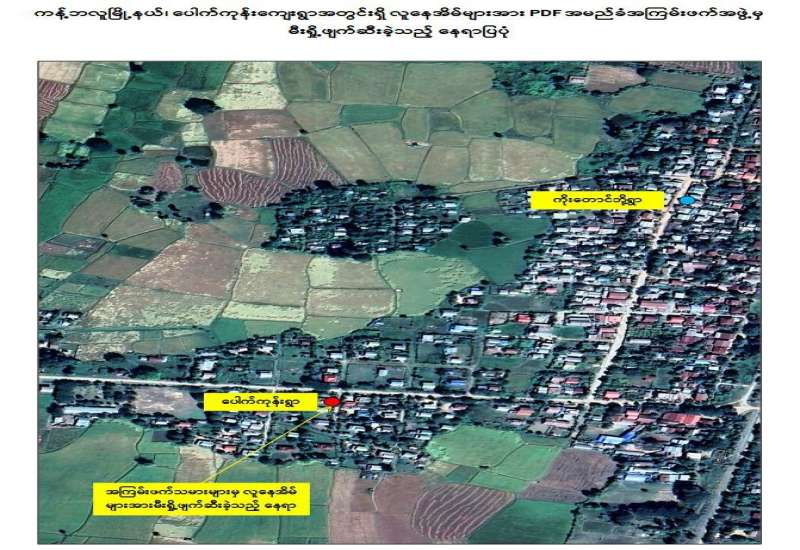 စစ်ကိုင်းတိုင်းဒေသကြီး၊ ကန့်ဘလူမြို့နယ်၊ ပေါက်ကုန်းကျေးရွာရှိ နေအိမ်များအား PDF အမည်ခံအကြမ်းဖက်သမားများက ဇွန် ၁၉ ရက်နေ့တွင် မီးရှို့ဖျက်ဆီးခဲ့ကြောင်း သိရှိရသည်။