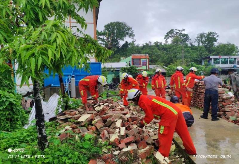 သဘာဝဘေးအန္တရာယ်ကျရောက်ခဲ့ရသည့် ဒေသများတွင် လိုအပ်သည့်ကူညီကယ်ဆယ်ရေးနှင့် ပြန်လည်ထူထောင်ရေးလုပ်ငန်းများ ကူညီဆောင်ရွက်ပေးနိုင်ရေးအတွက် တပ်မတော်မှကြိုတင်စုဖွဲ့စေလွှတ်ထားသည့် ကူညီကယ်ဆယ်ရေးအဖွဲ့များသည် နယ်မြေခံလုံခြုံရေးတပ်ဖွဲ့ဝင်များ၊ လူမှုကယ်ဆယ်ရေးအဖွဲ့များနှင့်ပူးပေါင်း၍ သက်ဆိုင်ရာဒေသများတွင် အင်တိုက်အားတိုက် ကူညီဆောင်ရွက်ပေးလျက်ရှိသည်။