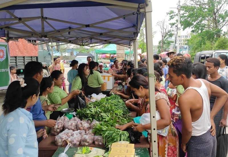 ဆိုင်ကလုန်းမုန်တိုင်း(မိုခါ)တိုက်ခတ်မှုကြောင့် ပျက်စီးမှုများဖြစ်ပေါ်ခဲ့သည့် စစ်တွေမြို့ရှိ မုန်တိုင်းဒဏ်သင့်ဒေသခံပြည်သူများနှင့် ဌာနဆိုင်ရာဝန်ထမ်းများ၏ စားသောက်ရေးအဆင်ပြေစေရန်နှင့် မိမိတို့အလိုရှိရာ စားသောက်ကုန်ပစ္စည်းများကို ဈေးနှုန်းသက်သာစွာဖြင့် ဝယ်ယူစားသောက်နိုင်ရေးအတွက် အနောက်ပိုင်းတိုင်းစစ်ဌာနချုပ်၊ နယ်မြေခံတပ်မတော်သားများနှင့် တာဝန်ရှိသူများက နေ့စဉ်ရောင်းချပေးလျက်ရှိသည်။