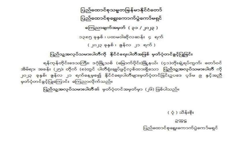 ပြည်သူ့အလုပ်သမားပါတီကို နိုင်ငံရေးပါတီအဖြစ် မှတ်ပုံတင်ခွင့်ပြုခြင်း