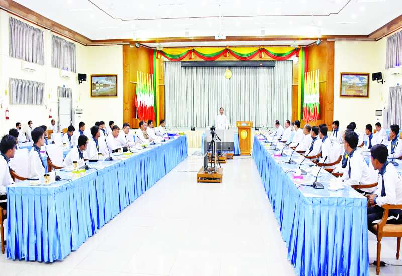 နိုင်ငံတော် စီမံအုပ်ချုပ်ရေးကောင်စီအဖွဲ့ဝင် ဒုတိယဝန်ကြီးချုပ်နှင့် ပြည်ထောင်စုဝန်ကြီး ဗိုလ်ချုပ်ကြီး တင်အောင်စန်းသည် ပြည်ထောင်စုဝန်ကြီးများဖြစ်ကြသည့် ဒုတိယဗိုလ်ချုပ်ကြီး ထွန်းထွန်းနောင်နှင့် ဒေါက်တာသက်သက်ခိုင်၊ ပြည်နယ်ဝန်ကြီးချုပ် ဦးထိန်လင်း၊ ဒုတိယဝန်ကြီးများ၊ တာဝန်ရှိသူများနှင့်အတူ ယနေ့နံနက် ၁၀ နာရီတွင် ရခိုင်ပြည်နယ်အစိုးရအဖွဲ့ရုံး၌ကျင်းပသည့် ရခိုင်ပြည်နယ်အတွင်း မိုခါမုန်တိုင်းတိုက်ခတ်မှုဒဏ်ကြောင့် ထိခိုက်ပျက်စီးခဲ့ရသည့် မွေးမြူရေးလုပ်ငန်းများနှင့် ရေလုပ်ငန်းများပြန်လည်ထူထောင်ရေးဆိုင်ရာ လုပ်ငန်းညှိနှိုင်းအစည်းအဝေးသို့ တက်ရောက်ကြသည်။