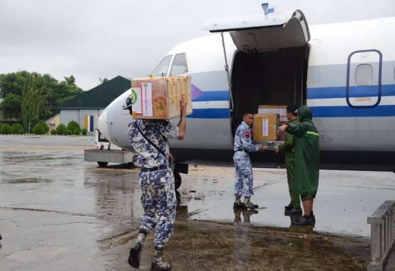တပ်မတော် (လေ) အနေဖြင့် သဘာဝဘေးဒဏ်သင့်ဒေသများသို့ တပ်မတော် (ကြည်း၊ ရေ၊ လေ) မိသားစုများ၊ စေတနာရှင်အလှူရှင်များက လှူဒါန်းသည့် စားသောက်ဖွယ်ရာများ၊ ကူညီထောက်ပံ့ရေးပစ္စည်းများ၊ အမျိုးသားသဘာဝဘေးအန္တရာယ်ဆိုင်ရာ စီမံခန့်ခွဲမှုကော်မတီက ထောက်ပံ့ပေးအပ်သည့်ပစ္စည်းများကို တပ်မတော်လေယာဉ်၊ ရဟတ်ယာဉ်များဖြင့် ကူညီပို့ဆောင်ပေးလျက်ရှိသည်။