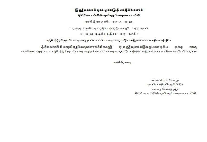 ရခိုင်ပြည်နယ်တရားလွှတ်တော် တရားသူကြီး ခန့်အပ်တာဝန်ပေးခြင်း