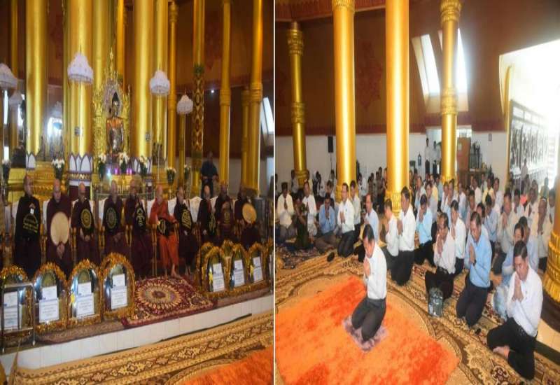 ရခိုင်ပြည်နယ်အတွင်း မိုခါမုန်တိုင်းတိုက်ခိုက်မှုကြောင့် ပျက်စီးသွားသောဘုန်းတော်ကြီးကျောင်းများနှင့် ဘုန်းတော်ကြီးသင်ပညာရေးကျောင်းများအတွက် သာသနာရေးနှင့်ယဉ်ကျေးမှုဝန်ကြီးဌာန၏ စီစဉ်ကြီးကြပ်မှုဖြင့် အလှူရှင်များကလှူဒါန်းသည့် အလှူငွေများအားပေးအပ်ပွဲကို ယနေ့နံနက်ပိုင်းတွင် ရခိုင်ပြည်နယ်၊ စစ်တွေမြို့၊ လောကာနန္ဒစေတီတော်လှိုဏ်ဂူအတွင်း၌ ကျင်းပပြုလုပ်ရာ ပြည်နယ်ဩဝါဒါစရိယ စစ်တွေမြို့၊ နန္ဒရာမပရိယတ္တိစာသင်တိုက်၏ ပဓာနနာယက ဆရာတော်အဂ္ဂမဟာပဏ္ဍိတ၊ အဂ္ဂမဟာဂန္ထဝါစက ပဏ္ဍိတဆရာတော် ဘဒ္ဒန္တနန္ဒသီရိအမှူးပြုသော သံဃာတော်အရှင်သူမြတ်များ ကြွရောက်တော်မူကြပြီး နိုင်ငံတော်စီမံအုပ်ချုပ်ရေးကောင်စီဒုတိယဥက္ကဋ္ဌ ဒုတိယဝန်ကြီးချုပ် ဒုတိယဗိုလ်ချုပ်မှူးကြီး စိုးဝင်းနှင့်အဖွဲ့ဝင်များ၊ စေတနာရှင်အလှူရှင်များနှင့် ဖိတ်ကြားထားသူများ တက်ရောက်ကြသည်။
