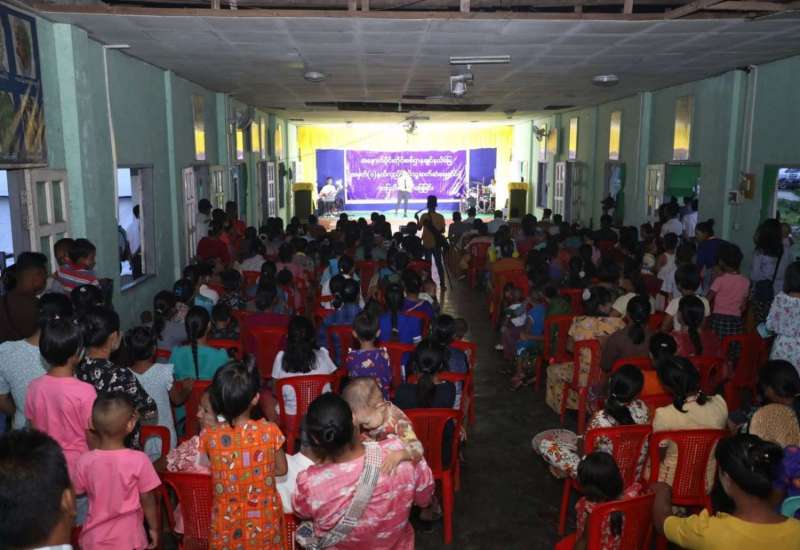 ရခိုင်ပြည်နယ်အတွင်းရှိ မိုခါမုန်တိုင်းဒဏ်သင့်ဒေသများတွင် ပြန်လည်ထူထောင်ရေးလုပ်ငန်းများ ဆောင်ရွက်လျက်ရှိသည့် အနောက်ပိုင်းတိုင်းစစ်ဌာနချုပ် နယ်မြေခံတပ်မတော်သားများ၊ မြန်မာနိုင်ငံရဲတပ်ဖွဲ့ဝင်များ၊ မီးသတ်တပ်ဖွဲ့ဝင်များနှင့် မိသားစုဝင်များအား စိတ်ရွှင်လန်းချမ်းမြေ့စေရန်နှင့် ပင်ပန်းနွမ်းနယ်မှုများပြေပျောက်စေရန်အတွက် ယနေ့ ညနေပိုင်းတွင် စစ်တွေမြို့ရှိ နယ်မြေခံရဲတပ်ရင်းခန်းမ၌ ကာကွယ်ရေးဦးစီးချုပ်ရုံး(ကြည်း)၊ ပြည်သူ့ဆက်ဆံရေးနှင့် စိတ်ဓါတ်စစ်ဆင်ရေး ညွှန်ကြားရေး မှူးရုံး ကွပ်ကဲမှုအောက်ရှိ နယ်လှည့် ပြည်သူ့ဆက်ဆံရေးတပ်ခွဲမှ စစ်သည်/ စစ်သမီးများက အဆို/အကများဖြင့် ဖျော်ဖြေတင်ဆက်ကြသည်။