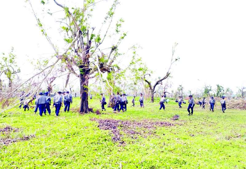 သဘာဝဘေးအန္တရာယ်ကျရောက်ခဲ့ရသည့်ဒေသများတွင် လိုအပ်သည့်ကူညီကယ်ဆယ်ရေးနှင့် ပြန်လည်ထူထောင်ရေးလုပ်ငန်းများ ကူညီဆောင်ရွက်ပေးနိုင်ရေးအတွက် တပ်မတော်မှကြိုတင်စုဖွဲ့စေလွှတ်ထားသည့် ကူညီကယ်ဆယ်ရေးအဖွဲ့များသည် နယ်မြေခံလုံခြုံရေးတပ်ဖွဲ့ဝင်များ၊ လူမှုကယ်ဆယ်ရေးအဖွဲ့များနှင့်ပူးပေါင်း၍ သက်ဆိုင်ရာဒေသများတွင် အင်တိုက်အားတိုက် ကူညီဆောင်ရွက်ပေးလျက်ရှိသည်။