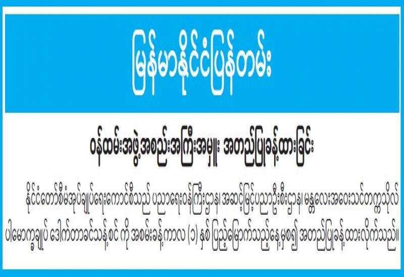 ဝန်ထမ်းအဖွဲ့အစည်းအကြီးအမှူး အတည်ပြုခန့်ထားခြင်း