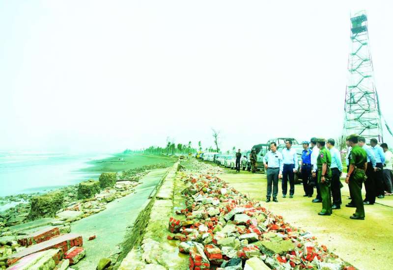 စစ်တွေမြို့သို့ရောက်ရှိနေသော အမျိုးသားသဘာဝဘေးအန္တရာယ်ဆိုင်ရာ စီမံခန့်ခွဲမှုကော်မတီဥက္ကဋ္ဌ နိုင်ငံတော်စီမံအုပ်ချုပ်ရေးကောင်စီဒုတိယဥက္ကဋ္ဌ ဒုတိယဝန်ကြီးချုပ် ဒုတိယဗိုလ်ချုပ်မှူးကြီး စိုးဝင်းသည် အဖွဲ့ဝင်များလိုက်ပါ၍ ယနေ့မွန်းလွဲပိုင်းတွင် မောင်တောမြို့နှင့် ဘူးသီးတောင်မြို့များသို့ သွားရောက်၍ ပြန်လည်ထူထောင်ရေးလုပ်ငန်းများဆောင်ရွက်နေမှုများအား လိုက်လံကြည့်ရှုစစ်ဆေးပြီး ခရိုင်/ မြို့နယ်အထွေထွေအုပ်ချုပ်ရေးမှူးရုံး အစည်းအဝေးခန်းမများ၌ ဌာနဆိုင်ရာများ၊ ကူညီကယ်ဆယ်ရေးအဖွဲ့များနှင့် ပရဟိတအဖွဲ့များအား သီးခြားစီ တွေ့ဆုံအမှာစကားပြောကြားသည်။