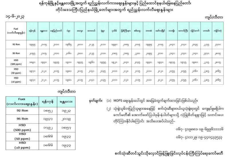 ရန်ကုန်မြို့နှင့် မန္တလေးမြို့အတွက် ရည်ညွှန်းလက်ကားဈေးနှုန်းများနှင့် ပြည်ထောင်စုနယ်မြေ နေပြည်တော်၊ တိုင်းဒေသကြီး/ ပြည်နယ် မြို့တော်များအတွက် ရည်ညွှန်းလက်လီဈေးနှုန်းများ