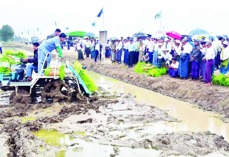 နေပြည်တော်ကောင်စီဥက္ကဋ္ဌ ဦးတင်ဦးလွင်သည် နေပြည်တော်ကောင်စီအဖွဲ့ဝင်များ၊ ဌာနဆိုင်ရာ တာဝန်ရှိသူများနှင့်အတူ ယနေ့နံနက်ပိုင်းတွင် ပြည်ထောင်စုနယ်မြေ နေပြည်တော် ဇေယျာသီရိ မြို့နယ် ရှာစေးဖိုကျေးရွာအနီးရှိ စပါးသားတက် ဆင့်ပွားစိုက်ပျိုးနည်းပညာ တောင်သူသရုပ်ပြ ပညာပေးစိုက်ခင်း ၃ ဒသမ ၆ ဧကတွင် ကောက်စိုက်စက်ဖြင့် သရုပ်ပြစိုက်ပျိုးနေမှုကို လာရောက်လေ့လာကြည့်ရှုသည့် မြို့နယ် ရှစ်မြို့နယ်မှ စပါးစိုက်တောင်သူ ၃၀၀ ကျော်နှင့် တွေ့ဆုံအားပေးစကား ပြောကြားသည်။