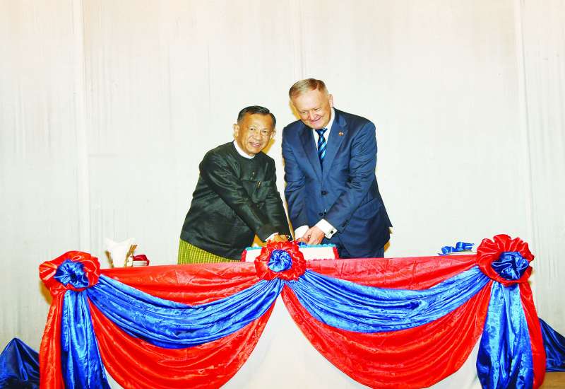 ရုရှားဖက်ဒရေးရှင်းနိုင်ငံ၏ အမျိုးသားနေ့အထိမ်းအမှတ်ဧည့်ခံပွဲ အခမ်းအနားကို ယနေ့ညပိုင်းတွင် ရန်ကုန်မြို့ Lotte Hotel ၌ကျင်းပရာ ရင်းနှီးမြှုပ်နှံမှုနှင့် နိုင်ငံခြားစီးပွားဆက်သွယ်ရေးဝန်ကြီးဌာန ပြည်ထောင်စုဝန်ကြီး ဒေါက်တာကံဇော် တက်ရောက်သည်။