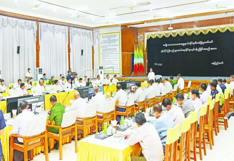 အမျိုးသားသဘာဝဘေးအန္တရာယ်ဆိုင်ရာ စီမံခန့်ခွဲမှု ကော်မတီ၏ ပြန်လည်ထူထောင်ရေးဆိုင်ရာ လုပ်ငန်းညှိနှိုင်းအစည်းအဝေးကို ယနေ့မွန်းလွဲပိုင်းတွင် နေပြည်တော်ရှိ လူမှုဝန်ထမ်း၊ ကယ်ဆယ်ရေးနှင့် ပြန်လည်နေရာချထားရေးဝန်ကြီးဌာန စုပေါင်းအစည်းအဝေးခန်းမ၌ကျင်းပရာ အမျိုးသားသဘာဝ ဘေးအန္တရာယ်ဆိုင်ရာ စီမံခန့်ခွဲမှုကော်မတီဥက္ကဋ္ဌ နိုင်ငံတော်စီမံအုပ်ချုပ်ရေးကောင်စီ ဒုတိယဥက္ကဋ္ဌ ဒုတိယဝန်ကြီးချုပ် ဒုတိယဗိုလ်ချုပ်မှူးကြီး စိုးဝင်းတက်ရောက် အမှာစကားပြောကြားသည်။