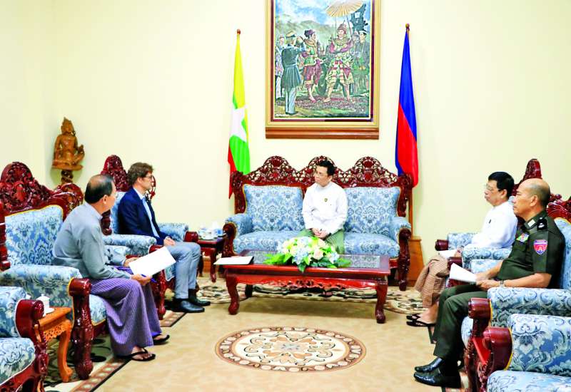 နိုင်ငံတော်သမ္မတရုံးဝန်ကြီးဌာန(၂) ပြည်ထောင်စုဝန်ကြီး ဦးကိုကိုလှိုင်သည် အပြည်ပြည်ဆိုင်ရာကြက်ခြေနီကော်မတီ(ICRC) ၏ မြန်မာနိုင်ငံဆိုင်ရာ ဌာနေကိုယ်စားလှယ်ဖြစ်သူ Mr. Arnaud de Baecque အား ယနေ့နံနက်ပိုင်းတွင် နေပြည်တော်ရှိ အမျိုးသားကာကွယ်ရေးနှင့်လုံခြုံရေးကောင်စီရုံးဧည့်ခန်းမ၌ လက်ခံတွေ့ဆုံသည်။