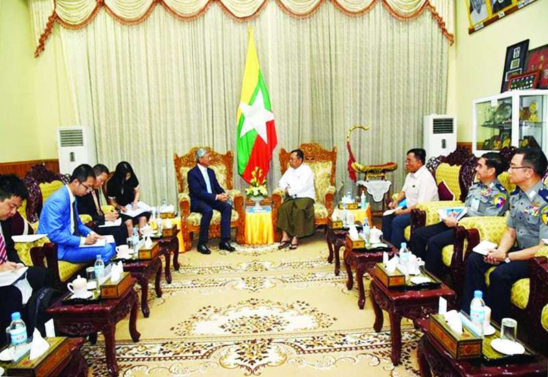 နိုင်ငံတော်စီမံအုပ်ချုပ်ရေးကောင်စီအဖွဲ့ဝင် ဒုတိယဝန်ကြီးချုပ်နှင့် ပြည်ထဲရေးဝန်ကြီးဌာန ပြည်ထောင်စုဝန်ကြီး ဒုတိယဗိုလ်ချုပ်ကြီး စိုးထွဋ်သည် မြန်မာနိုင်ငံဆိုင်ရာ တရုတ်ပြည်သူ့ သမ္မတနိုင်ငံ သံအမတ်ကြီး H.E. Mr. Chen Hai ဦးဆောင်သောအဖွဲ့ ကို ယနေ့နံနက် ၁၀ နာရီတွင် နေပြည်တော်ရုံးအမှတ် (၁၀) ပြည်ထဲရေးဝန်ကြီးဌာန ပြည်ထောင်စုဝန်ကြီး၏ ဧည့်ခန်းမ၌ လက်ခံတွေ့ဆုံသည်။
