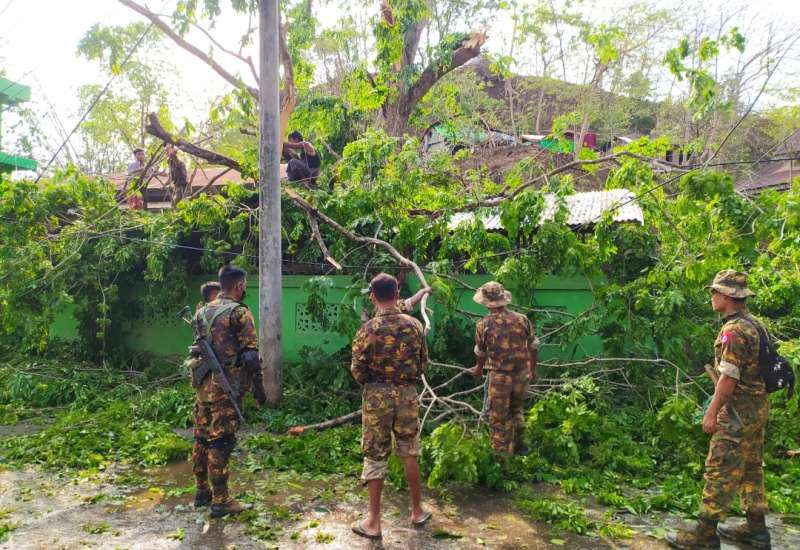 ရခိုင်ပြည်နယ်၊ မြောက်ဦးခရိုင်၊ မြောက်ဦးမြို့၌ အလွန့်အလွန်အားကောင်းသော ဆိုင်ကလုန်းမုန် တိုင်း(မိုခါ) တိုက်ခိုက်မှုကြောင့် သစ်ပင်၊ သစ်ကိုင်းများ၊ ဓာတ်တိုင်များ ကျိုးကျပျက်စီးရာမှ လမ်းပိတ်ဆို့မှုများမဖြစ်စေရန်အတွက် ဖယ်ရှားရှင်းလင်းခြင်းကို ယမန်နေ့နံနက် ၈ နာရီက တာဝန်ရှိသူများ ပူးပေါင်းအဖွဲ့က ကွင်းဆင်းဆောင်ရွက်ခဲ့ကြသည်။