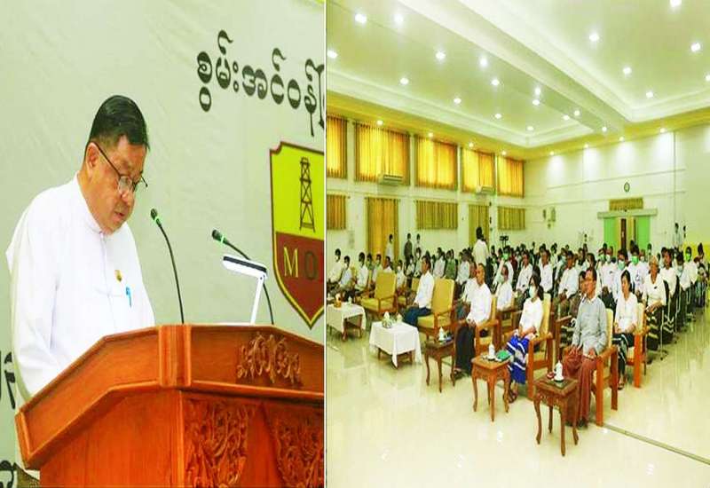 ၂၀၂၃-၂၀၂၄ ပညာသင်နှစ်တွင် စွမ်းအင်ဝန်ကြီးဌာနရှိ ဝန်ထမ်းသားသမီးများမှ မူကြိုနှင့် KG+9 အထိ တက်ရောက်မည့် ကျောင်းသား ကျောင်းသူများအား ပညာသင်ထောက်ပံ့ကြေး ပေးအပ်ပွဲအခမ်းအနားကို ယနေ့နံနက်ပိုင်းက ရုံးအမှတ် (၆) ရှိ ရတနာခန်းမ၌ ကျင်းပရာ စွမ်းအင်ဝန်ကြီးဌာန ပြည်ထောင်စုဝန်ကြီး ဦးမျိုးမြင့်ဦး တက်ရောက်အမှာစကား ပြောကြားသည်။