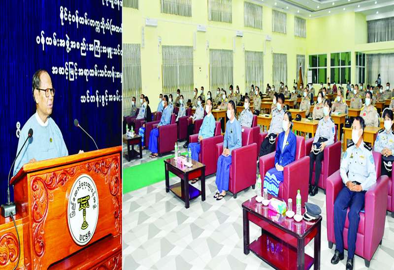 နိုင်ငံ့ဝန်ထမ်းတက္ကသိုလ် (အထက်မြန်မာပြည်)တွင် ဝန်ထမ်းအဖွဲ့အစည်း အကြီးအမှူးသင်တန်း အမှတ်စဉ်(၁၃)နှင့် အဆင့်မြင့် အရာထမ်းသင်တန်းအမှတ်စဉ် (၁၄) သင်တန်းဖွင့်ပွဲ အခမ်းအနား ကို ယနေ့နံနက် ၈ နာရီက အဆိုပါ သင်တန်းကျောင်း နီလာခန်းမ၌ကျင်းပရာ ပြည်ထောင်စုရာထူးဝန်အဖွဲ့ဥက္ကဋ္ဌ ဦးစစ်အေး၊ တာဝန်ခံအဖွဲ့ဝင် ဦးဆန်းမြင့်၊ ပြည်ထောင်စု ရာထူးဝန်အဖွဲ့ရုံး ညွှန်ကြားရေးမှူးချုပ်၊ နိုင်ငံ့ဝန်ထမ်းတက္ကသိုလ် (အထက်မြန်မာပြည်) ပါမောက္ခချုပ်နှင့် ဒုတိယပါမောက္ခချုပ်များ၊ တက္ကသိုလ် သင်ကြား/ စီမံ ဌာနများမှ တာဝန်ရှိပုဂ္ဂိုလ်များ၊ ဖိတ်ကြားထားသော ဧည့်သည်တော်များနှင့် သင်တန်းသား သင်တန်းသူများ တက်ရောက်ကြသည်။