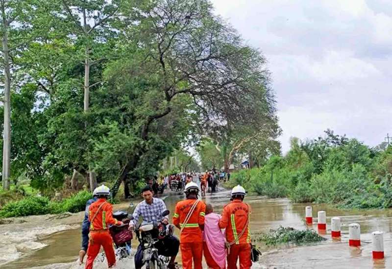 မကွေးတိုင်းဒေသကြီး၊ မင်းဘူးခရိုင်အတွင်း ဆိုင်ကလုန်းမုန်တိုင်း မိုခါကြောင့် မိုးသည်းထန်စွာ ရွာသွန်းခဲ့သဖြင့် ယနေ့နံနက်ပိုင်းက မင်းဘူး(စကု)မြို့နယ် ကျောက်စစ်ပုံကျေးရွာအနီး မင်းဘူး-ပွင့်ဖြူ-စလင်းသွား ကားလမ်းမပေါ် ရေကျော်ကျနေကြောင်း သိရ၍ ပွင့်ဖြူမြို့နယ် မီးသတ်ဦးစီးမှူး ဦးရဲလင်းနောင် ဦးဆောင်သော သန္ဓေ၊ အရန် မီးသတ်တပ်ဖွဲ့ဝင်များက ဒေသခံပြည်သူများနှင့် ခရီးသွားပြည်သူများ အန္တရာယ်ကင်းစွာ သွားလာနိုင်ရေး လိုအပ်သည့် ကူညီကယ်ဆယ်ရေးလုပ်ငန်းများ သွားရောက်ကူညီ ဆောင်ရွက်ပေးခဲ့ကြောင်း သိရသည်။