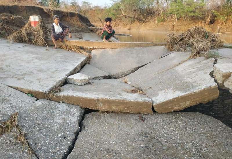 မကွေးတိုင်းဒေသကြီး၊ ပွင့်ဖြူမြို့နယ်တွင် ဆိုင်ကလုန်းမုန်တိုင်း မိုခါကြောင့် မေ ၁၃ ရက်နေ့မှ ၁၄ ရက်နေ့အထိ မိုးသည်းထန်စွာ ရွာသွန်းခဲ့သဖြင့် ပွင့်ဖြူမြို့နယ် ကြီးအုံကြီးဝတမံသွား သုံးမိုင်ခွဲ ကွန်ကရစ်လမ်းပေါ်ရှိ ကျွဲတံခါးကျေးရွာ အနီး ကျွဲတံခါးရေကျော်ချောင်းပေါင်း၌ ရေတိုက် စားမှုကြောင့် ထိခိုက်ပျက်စီးမှုများ ဖြစ်ပွားခဲ့ကြောင်း ပွင့်ဖြူမြို့နယ် ကျွဲတံခါးကျေးရွာရှိ ဒေသခံပြည် သူများထံမှ သိရသည်။
